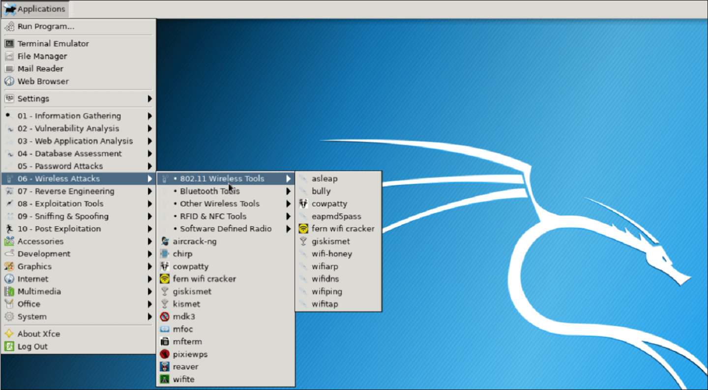 To install any of the tool packages, just use “apt-get install” with the package name. So, if we wanted to install the Kali Wireless tool package, we would use: